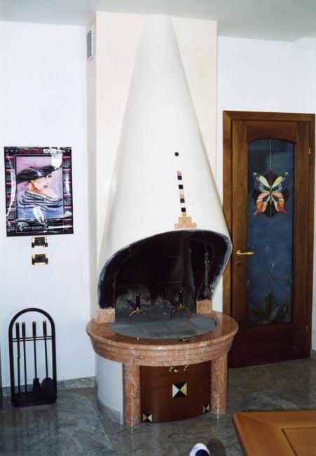Camino moderno camino particolare a punta con forme studiate da un'architetto, le finiture curate nei minimi particolari rendono questo camino un modello unico nel suo genere.