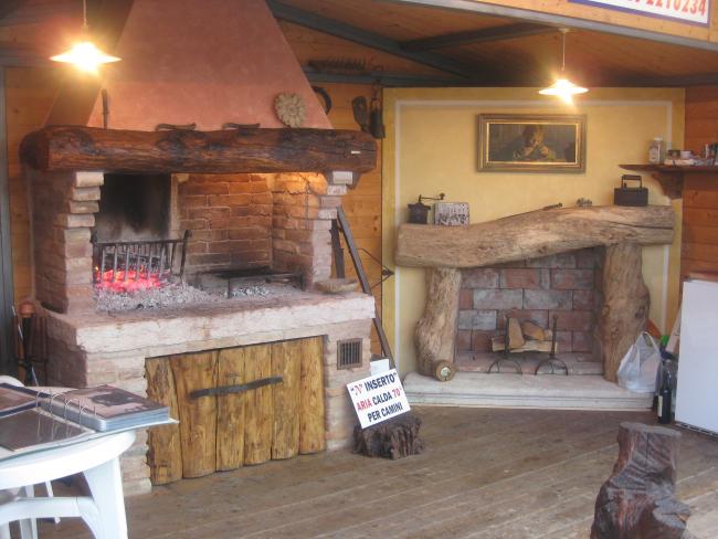 Camino rustico Camini in vetrina, questi camini sono situati dentro una casetta in legno adibita a stend fieristico, che nel corso dell'anno porto a dimostrazione in alcune fiere del posto.