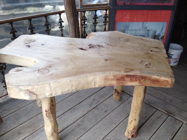 Tavolo ricavato da uno spessore della pianta di pioppo e lasciato al naturale.